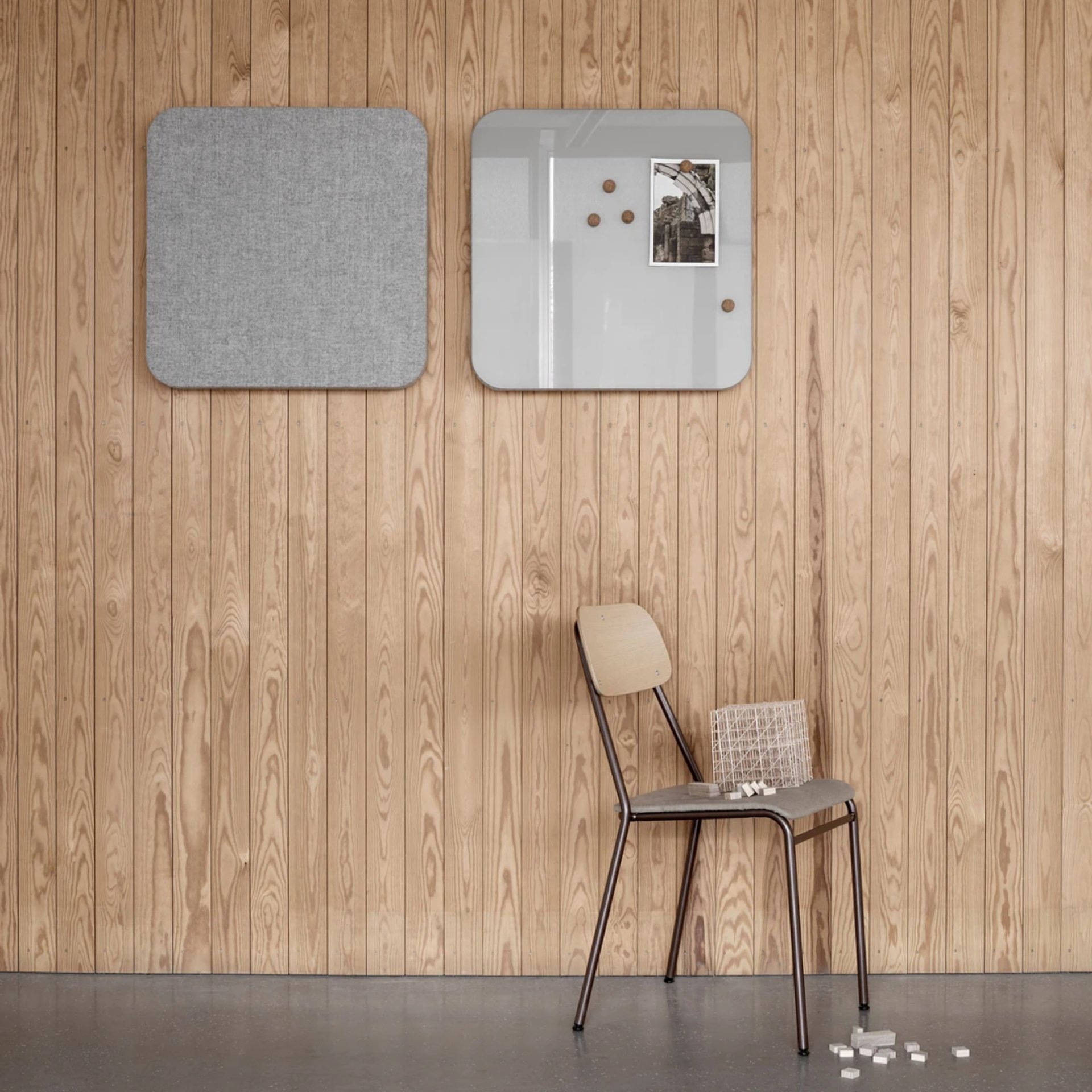 The collection allows for a sophisticated material interplay between the Bloc Whiteboard and Bloc Cork. The whiteboard features a high-performance magnetic writing surface in either glossy Mood or matte Silk glass, available in 24 contemporary colours. In contrast, the Bloc Cork offers a tactile, self-healing surface made from solid, high-quality cork, providing a natural warmth and organic texture for pinning and display. By combining the precision of glass with the sustainability of cork, the Bloc range offers a smart, infinitely modular solution for workspaces that value architectural geometry and creative freedom.