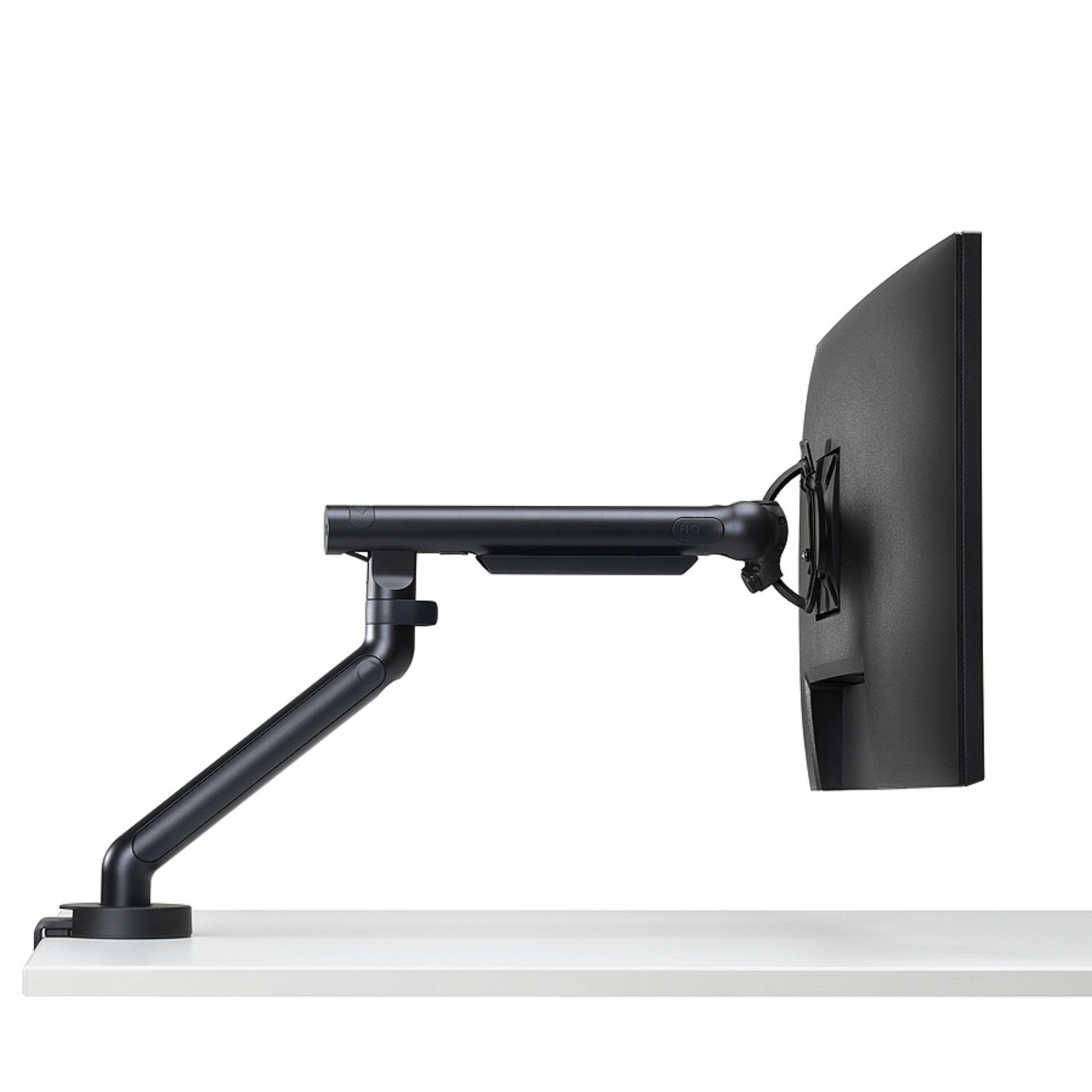 The Flo monitor arm redefines ergonomic screen support with sleek design, effortless movement, and precision engineering. Designed for flat and curved monitors (up to 1000R and above) weighing 2 – 7kg, its dual-rate spring technology ensures smooth, dynamic adjustment with fingertip control. A discreet three-point cable management system maintains a clean, minimal aesthetic, while the single-point tension adjustment reduces installation time by up to 33%. Built for modern workspaces, Flo combines performance, sustainability, and style in one elegant solution.