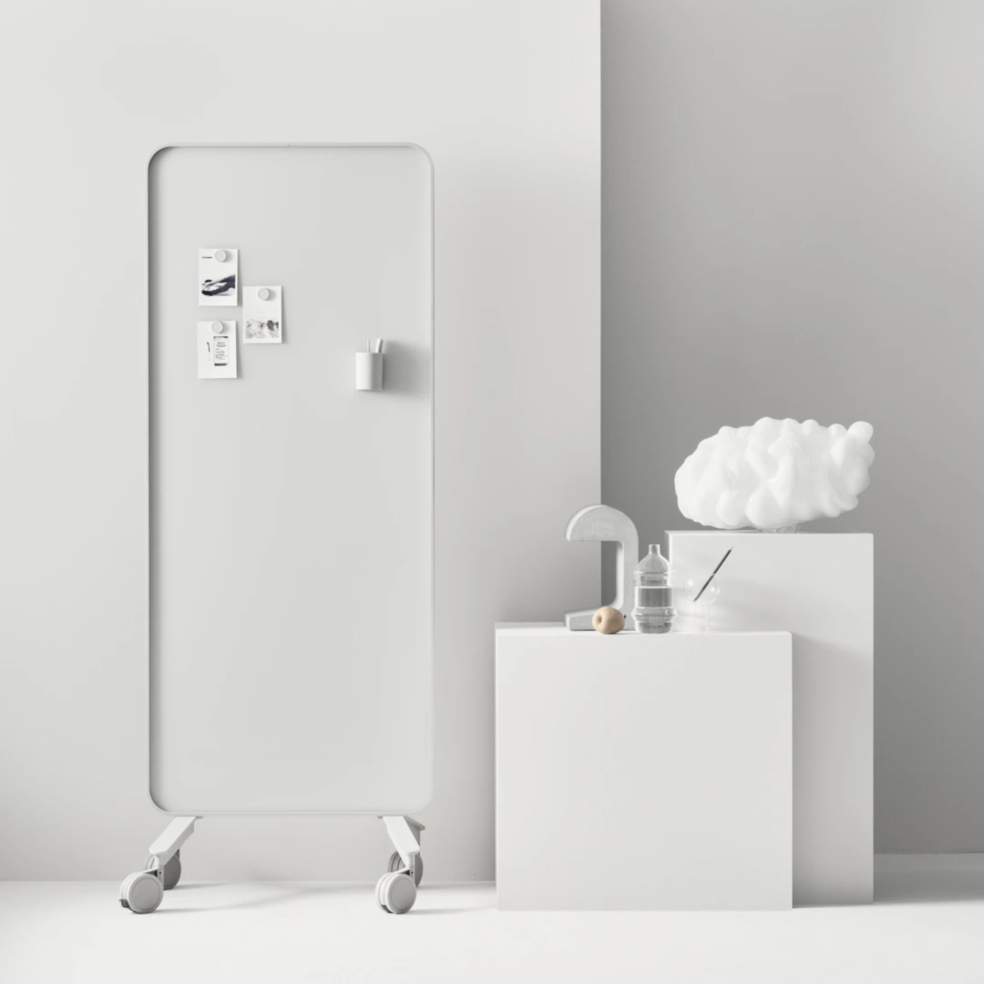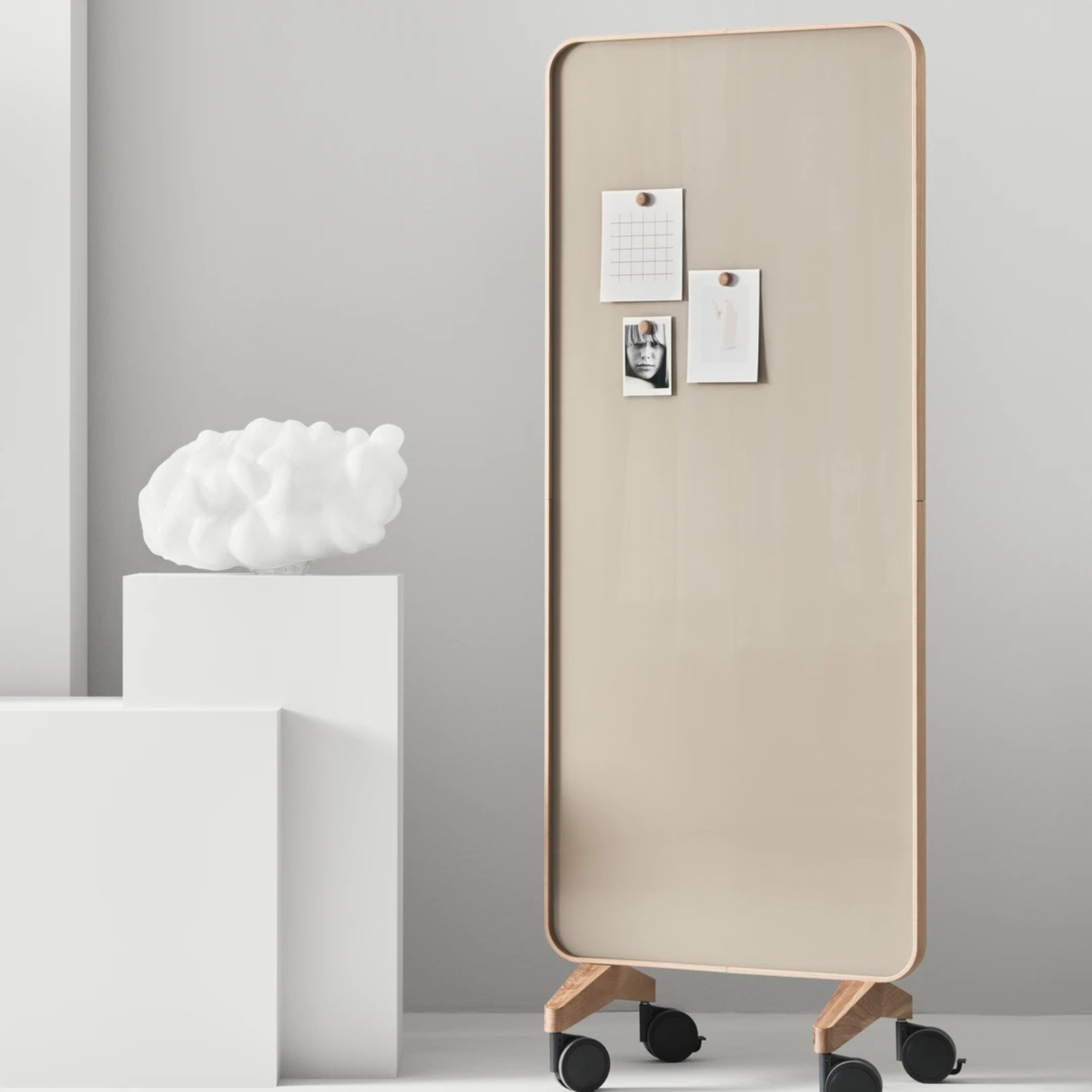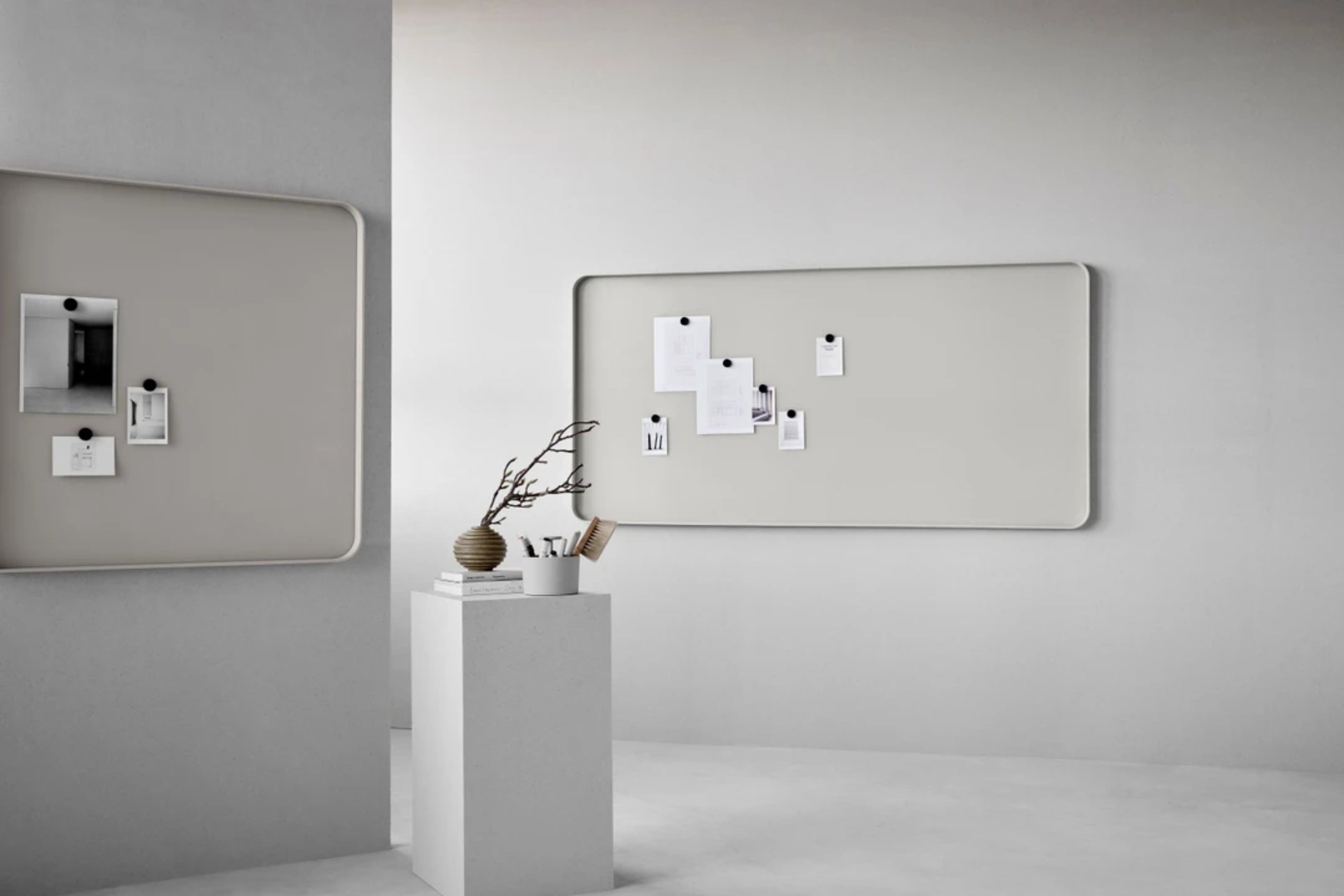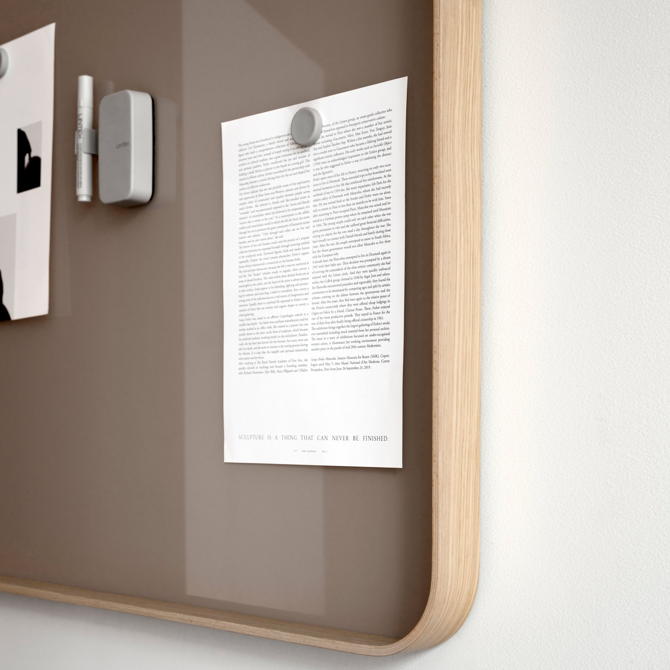 Lintex Frame is a masterclass in minimalist geometry, offering a refined interpretation of the classic writing board through its signature rounded frame. Designed by Halleroed and Matti Klenell, the collection is defined by its soft, bentwood frame available in solid Oak or grey stained Ash, which provides a warm, tactile contrast to the crisp precision of the writing surface. Whether specified as the elegant, wall-mounted Frame Wall or the versatile Frame Mobile, the range serves as a sophisticated architectural element that bridges the gap between functional office equipment and high-end furniture.