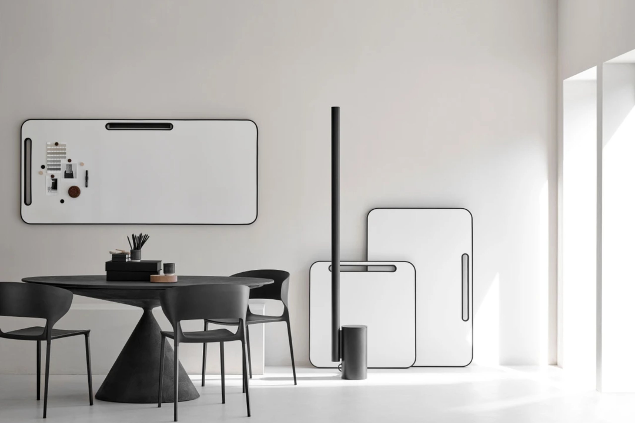 Lintex maintains its very own attitude in this world of non-design. By working with several leading Scandinavian designers such as Halleroed, Matti Klenell, Afteroom and Fredrik Mattson, they give writable surfaces a stylish and functional beauty by using tempered glass, high-end textiles, solid wood, and enamelled steel.