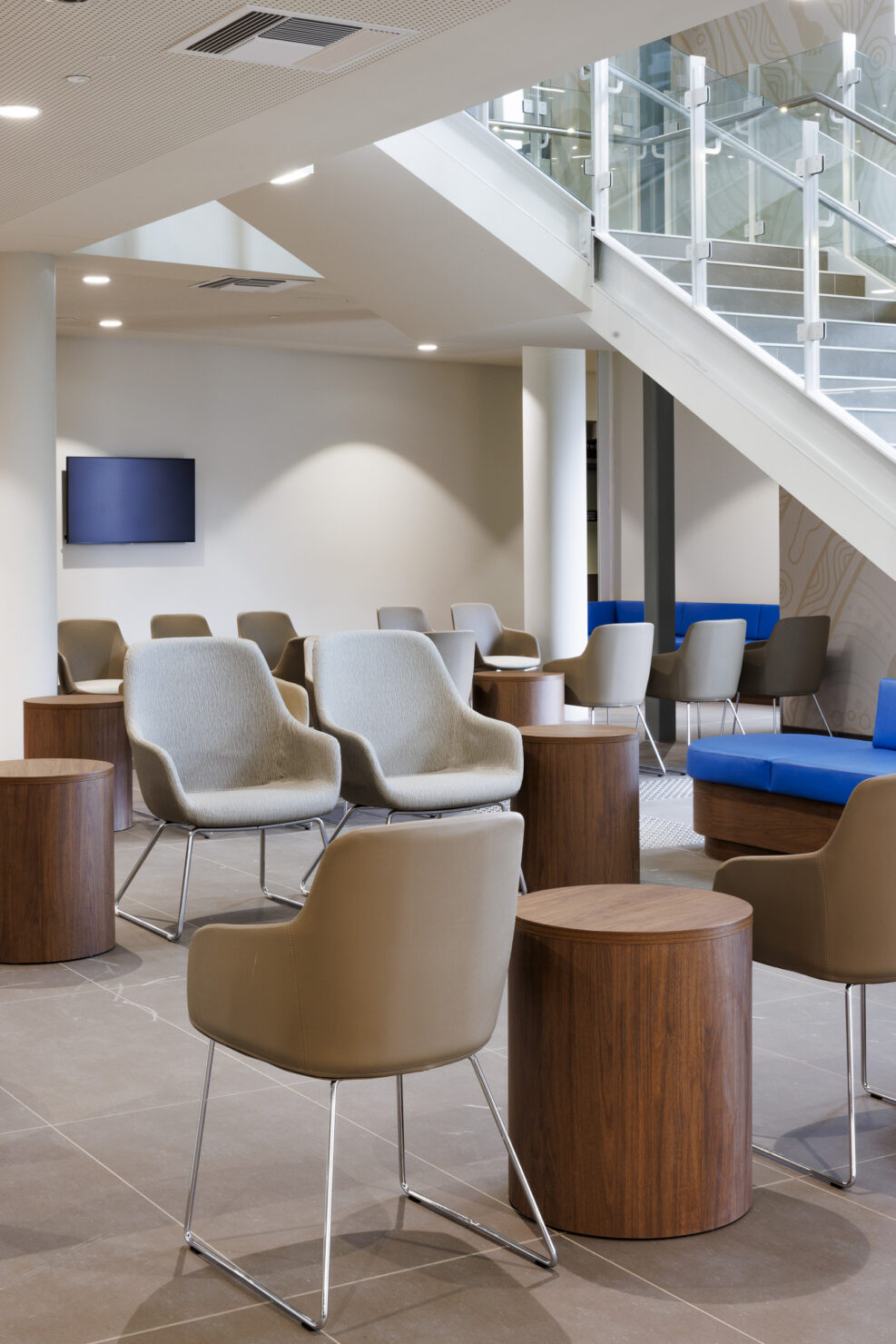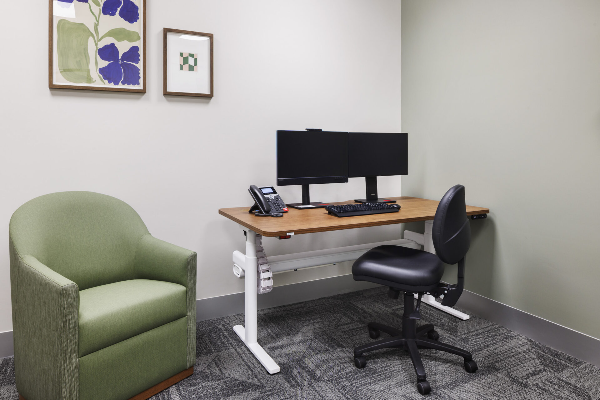 Working closely with the interior design team at HDR Inc, we developed and delivered a comprehensive workstation solution anchored by 248 Ovation electric height-adjustable desks. Installed across clinical, administrative, and consulting areas, the workstations were selected to support ergonomic flexibility, efficient cable management, and the day-to-day demands of a contemporary healthcare environment.